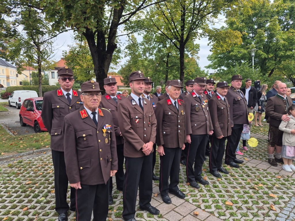 16 Kameraden nahmen an den Feierlichkeiten zum Erntedankfest in Suben teil. Kurzfristig wurde die B149 durch Lotsen für den Verkehr gesperrt bis der Festzug vom Pfarrhof in die Kirche eingezogen war.