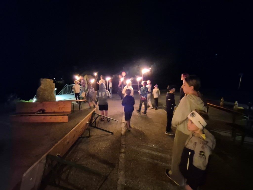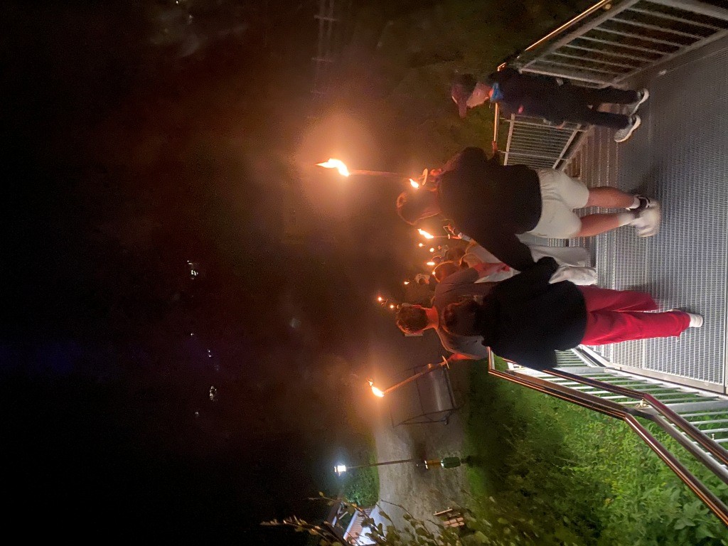 Im Anschluss gab es noch einen Filmabend in der Fahrzeughalle. Für die, die noch nicht schlafen konnten, wurde beim Lagerfeuer die eine oder andere Geschichte erzählt.