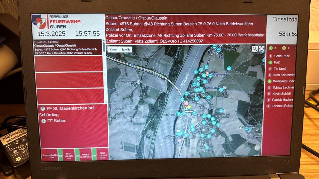 Kurz vor 15:00 Uhr wurde die FF-Suben zu einem Ölspureinsatz am Zollamtsgelände in Suben gerufen. Am Einsatzort - Ausreise Österreich, Parkplatz - wurde ein LKW vorgefunden, bei welchem im Betrieb Betriebsmittel austrat. Die alarmierten Feuerwehren Suben und St. Marienkirchen rückten mit ca. 25 Mann und 5 Fahrzeugen zum Einsatzort aus (unklare Lage). Am Einsatzort bestätigte sich der Alarmtext.