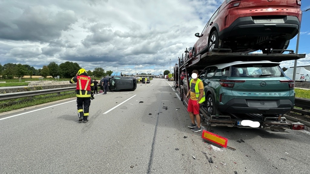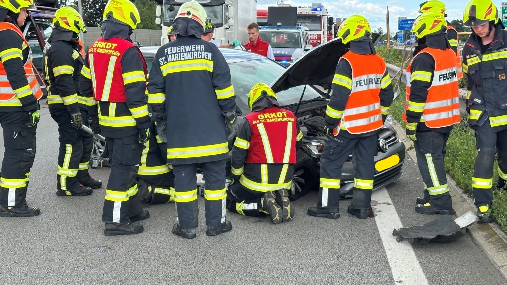 Durch einen E-Call wurde die FF-Suben gemeinsam mit der FF-St. Marienkirchen gegen 11:02 Uhr zu einem Verkehrsunfall mit eingeklemmter Person im Bereich der A8 Grenzübergang Suben - Zollamtsgelände gerufen. Bereits auf der Anfahrt wurden die Einsatzkräfte durch Florian LFK darüber informiert, dass zumindest ein Unfallfahrzeug auf der Seite liegt. Bereits bei der Anfahrt von der Auffahrt zur Autobahn bis kurz vor dem Grenzübergang hatte sich ein Stau gebildet. Die Bereits eingetroffene Polizei hatte die A8 in diesem Bereich gesperrt. Die Einsatzkräfte der Feuerwehr bauten sofort eine Rückwärtssicherung auf um schnellstmöglich mit dem Hydraulischen Rettungsgerät die Befreiung der Verunfallten Person in die Wege zu leiten. Person bereits befreit - Die zuvor eingeklemmte Person konnte durch die Polizei bereits durch die hintere Fahrertür aus dem Fahrzeug befreit werden. Somit konnte der Einsatzschwerpunkt auf das Freimachen der Fahrbahn und beseitigen der Trümmer gelegt werden. Bereits 30 Minuten nach der Alarmierung konnte eine Fahrspur für den Verkehr freigegeben werden. Nach 55 Minuten nach der Alarmierung wurde der 2. Fahrstreifen der A8 freigegeben und die Einsatzkräfte rückten in die Feuerwehrhäuser ein. Gegen 12:15 Uhr beendeten beide Feuerwehren den Einsatz.