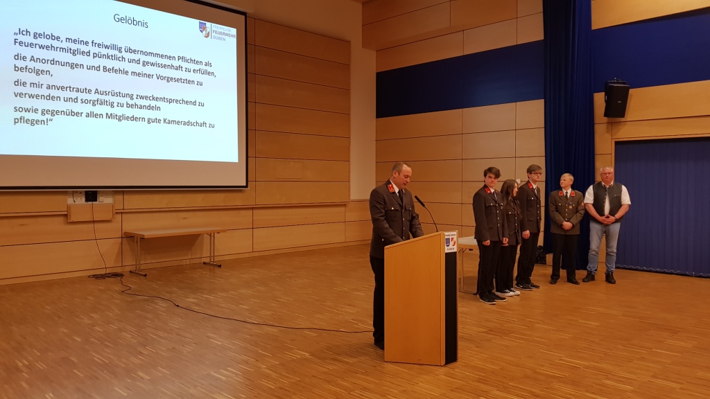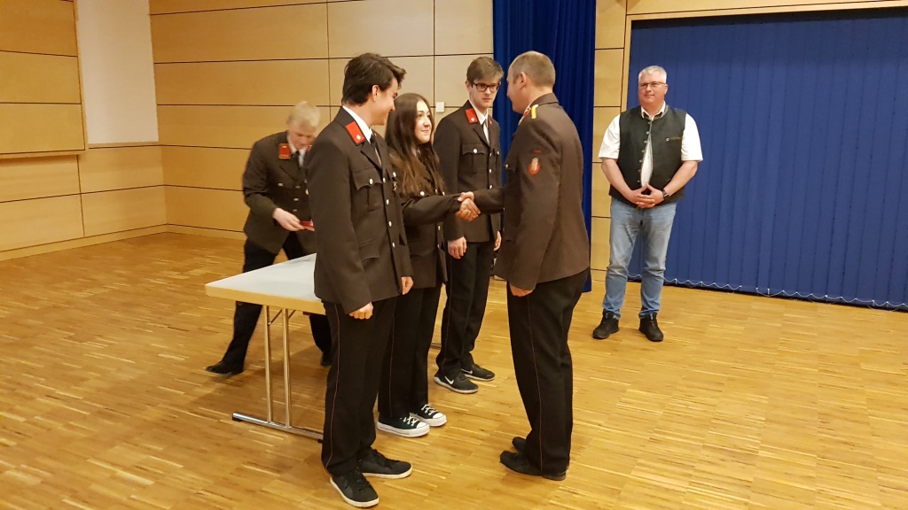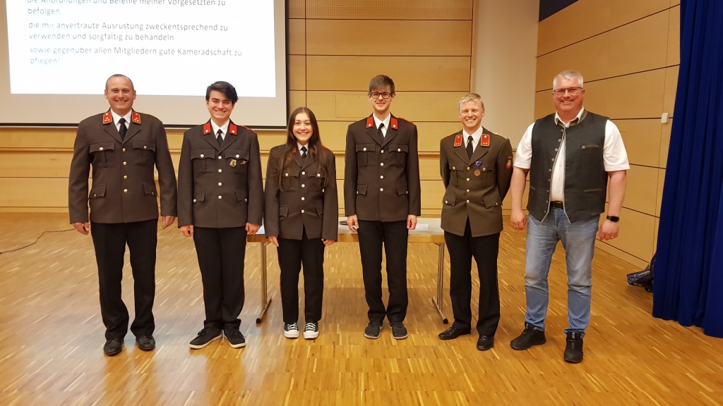 Angelobt wurden die Jugendfeuerwehrmitglieder Stöckl Alexander, Eder Lara Marie, Duscher Anna und Schano Sara. In den Aktivstand überstellt und angelobt wurden Mairinger Lara, Eder Lukas und Tischler Michel. Zum Hauptfeuerwehrmann wurden Prinstinger Simon und Pröll Jonas und zum Oberfeuerwehrmann wurde Zahrer Salem befördert.