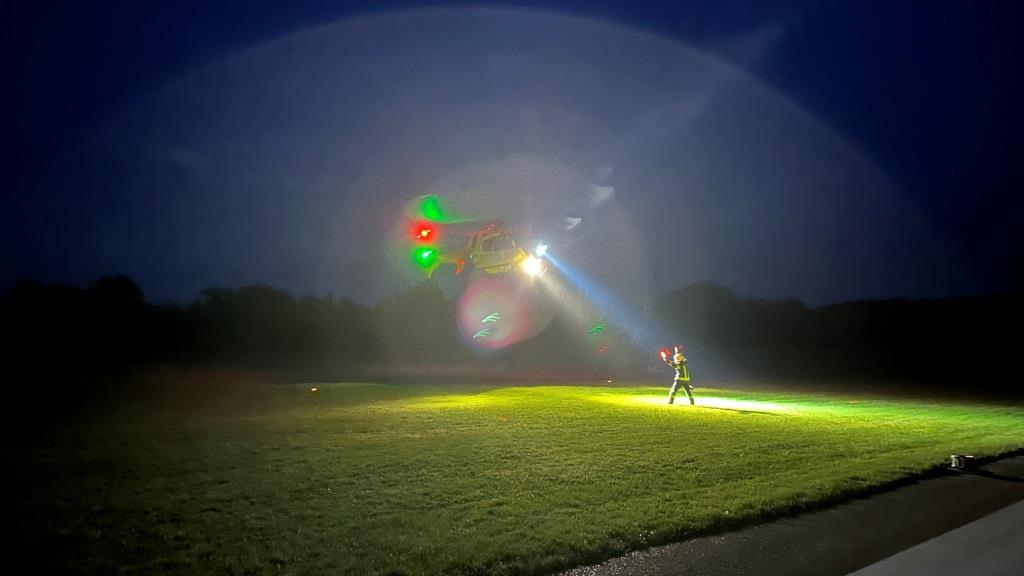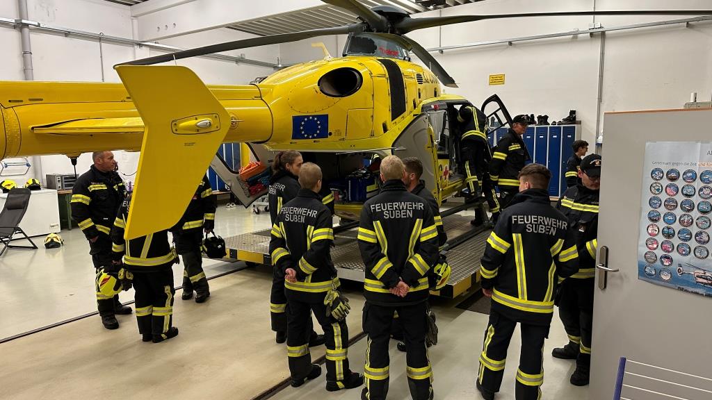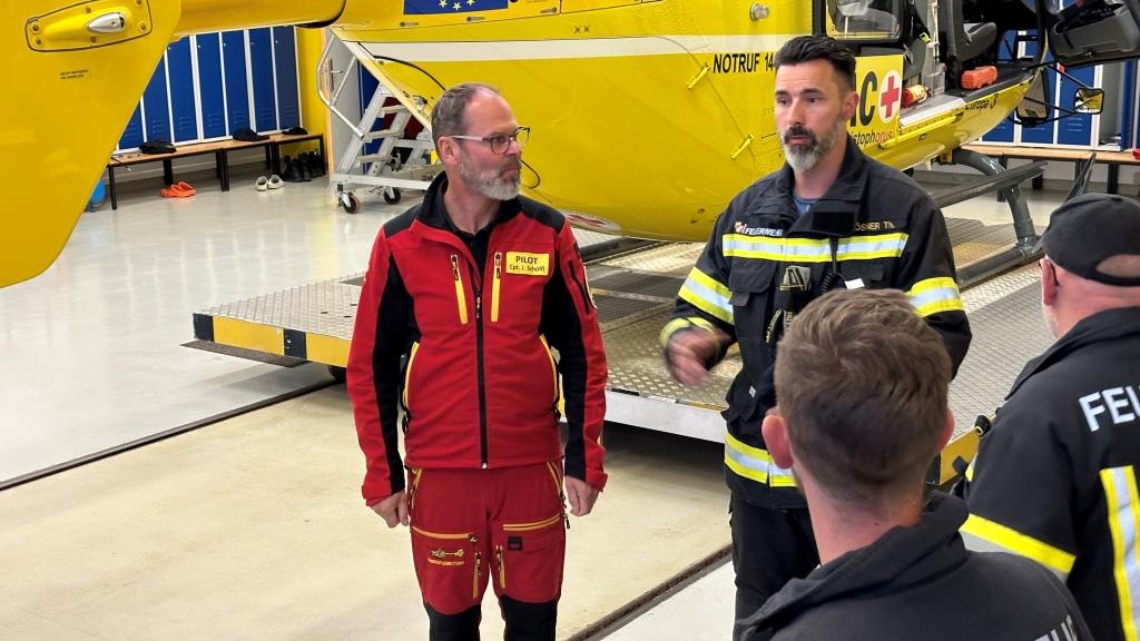 In der Schulung wurde auf die möglichen Einweisezeichen und die Sicherheitsbestimmungen beim Einweisen von Hubschraubern. Mitten in der Schulung erfolgte für die Besatzung des Hubschraubers eine Realalarmierung.
