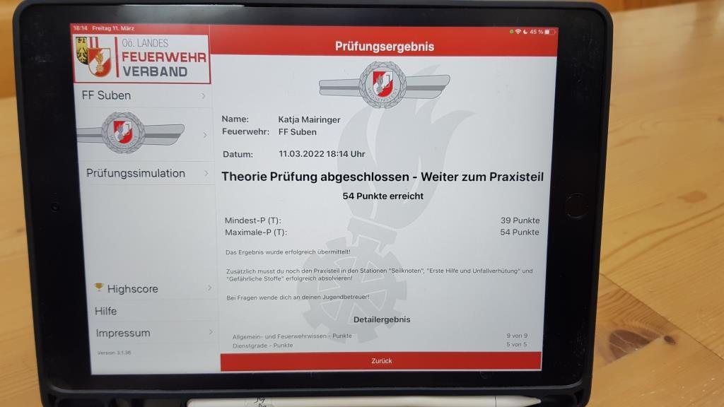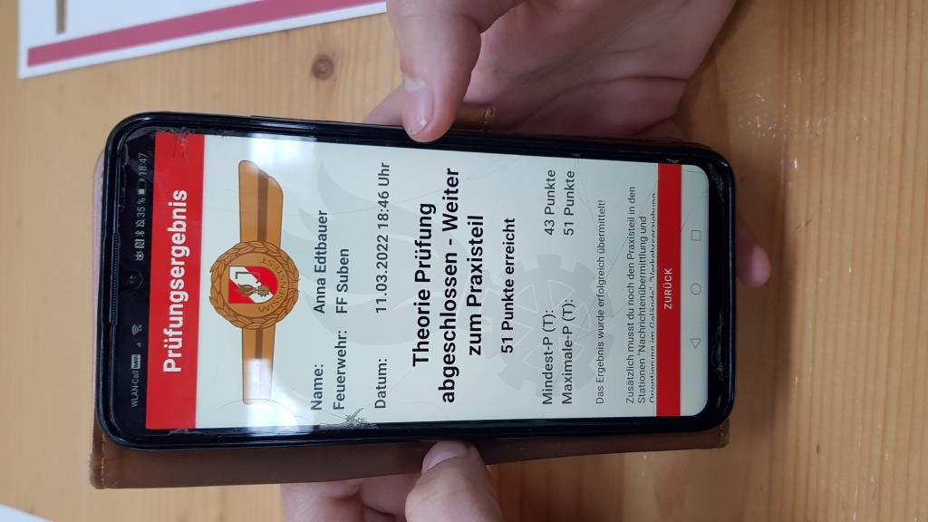 Freitag, den 11. März wurde im Feuerwehrhaus abends die Wissenstestprüfung per Handy mittels Prüfungsapp durchgeführt. Dies macht 95 Prozent des Wissenstest aus. Der praktische Teil findet am 2. April in Schardenberg statt. Die Prüfung bestanden haben