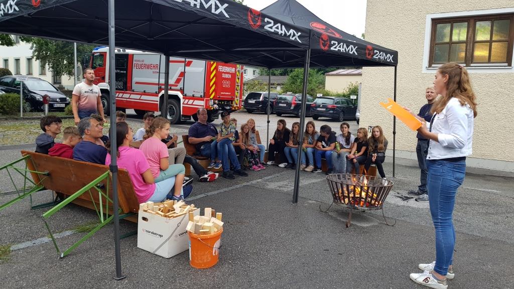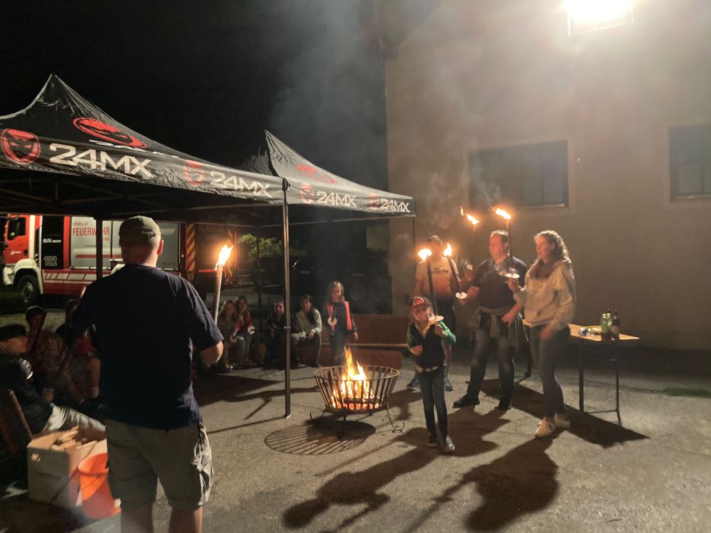 Im Anschluss an den Film erfolgte die Rückreise ins Feuerwehrhaus. Hier wurde am Vorplatz alles für das abendliche Grillen vorbereitet. Nach dem üppigen Abendessen gings auf zur Fackelwanderung in Suben.