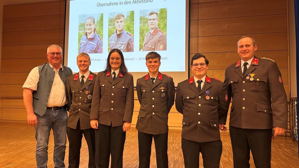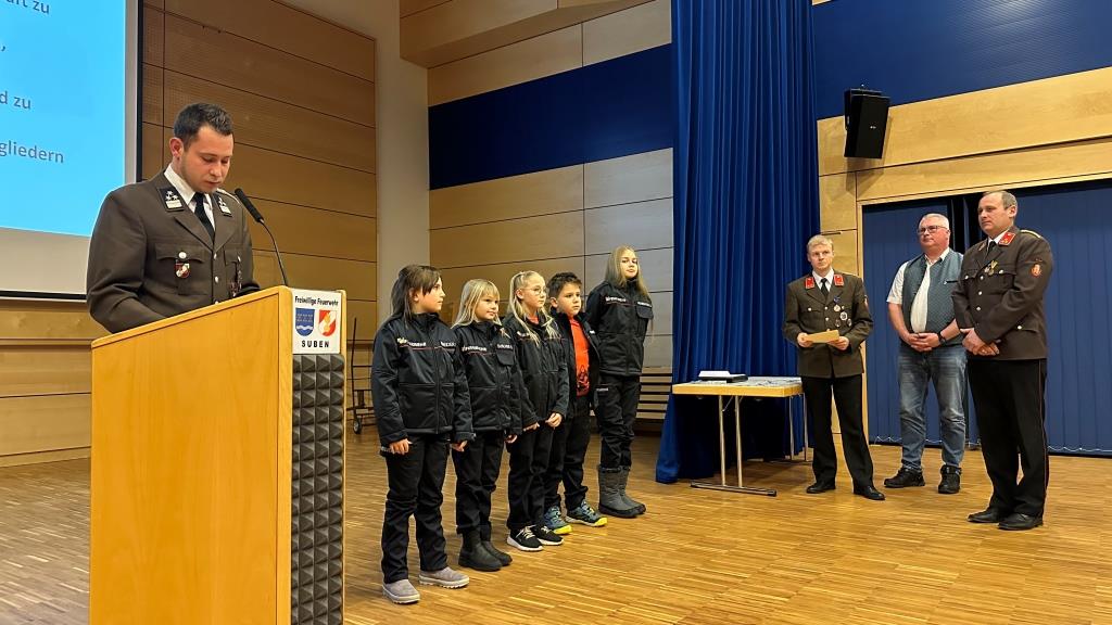 Angelobt wurden die Jugendfeuerwehrmitglieder Duscher Clara, Knödelseder Aaliyah, Schneider Luise, Sedlmayer Tristan und Humenyuk Karina.