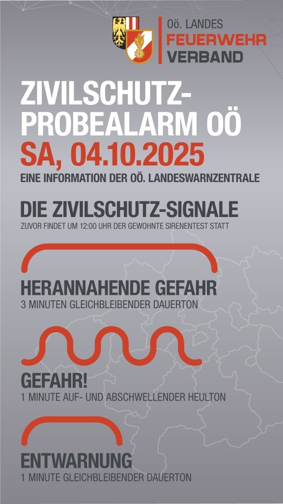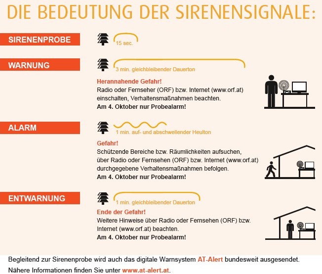 Pünktlich am 1. Samstag im Oktober um 12:00 Uhr - 12:15 Uhr - 12:30 Uhr - 12:45 Uhr wird der Zivilschutz-Probealarm in ganz Österreich ausgelöst.