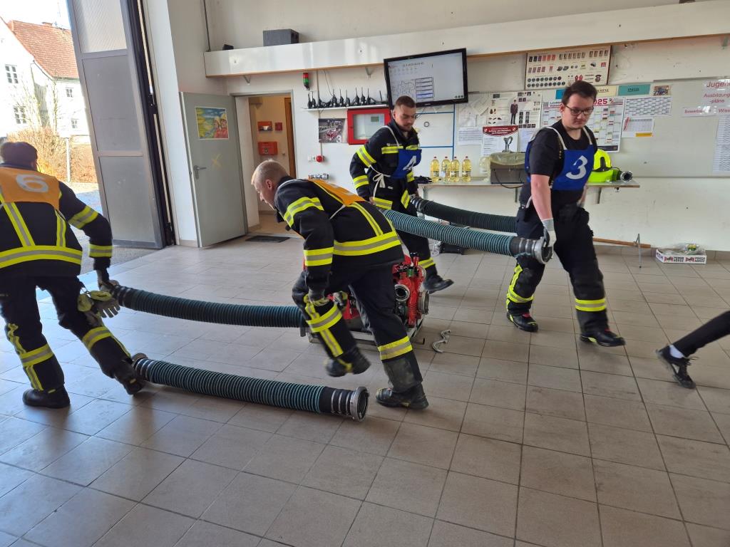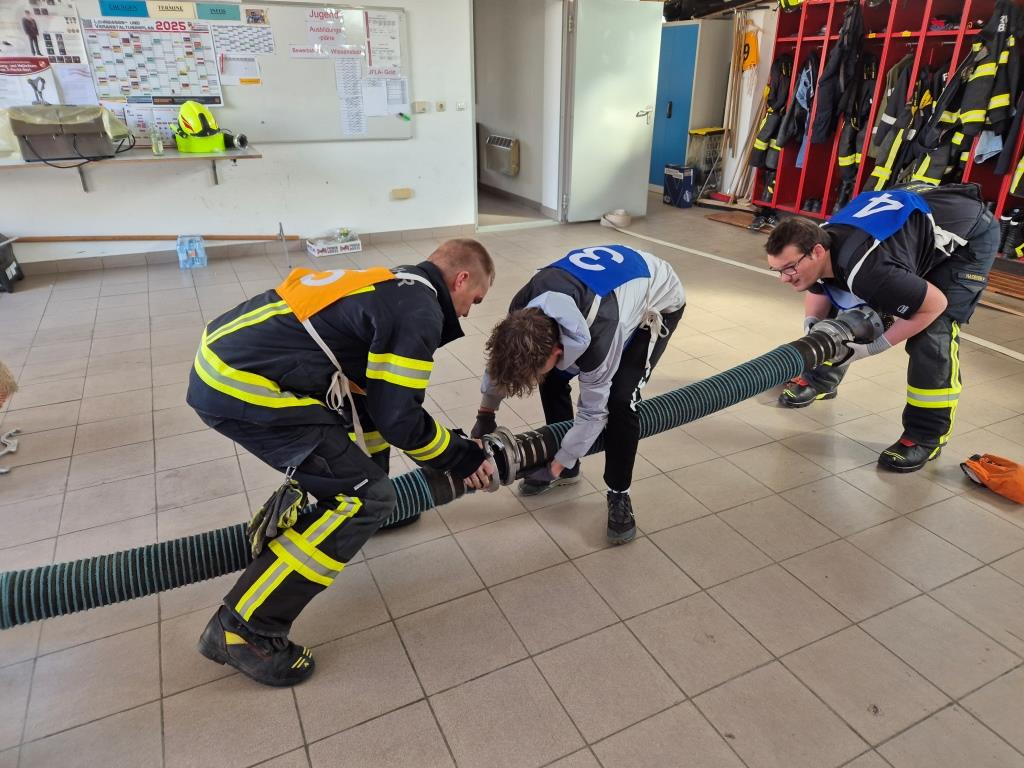Gemeinsam mit anderen ist es ein wichtiger Prüfungsteil beim Jugendleistungsabzeichen Gold eine Saug- und Zubringleitung - vom Saugkorb bis zum Verteiler - herstellen zu können. Dabei wird unser Teilnehmer mit Teilnehmern von anderen Jugendgruppen zusammenarbeiten um dieses Ziel zu erreichen. Am Samstag wurde dies mit einigen aktiven Kameraden geübt, um die letzten Feinheiten und Abläufe noch einzuüben.