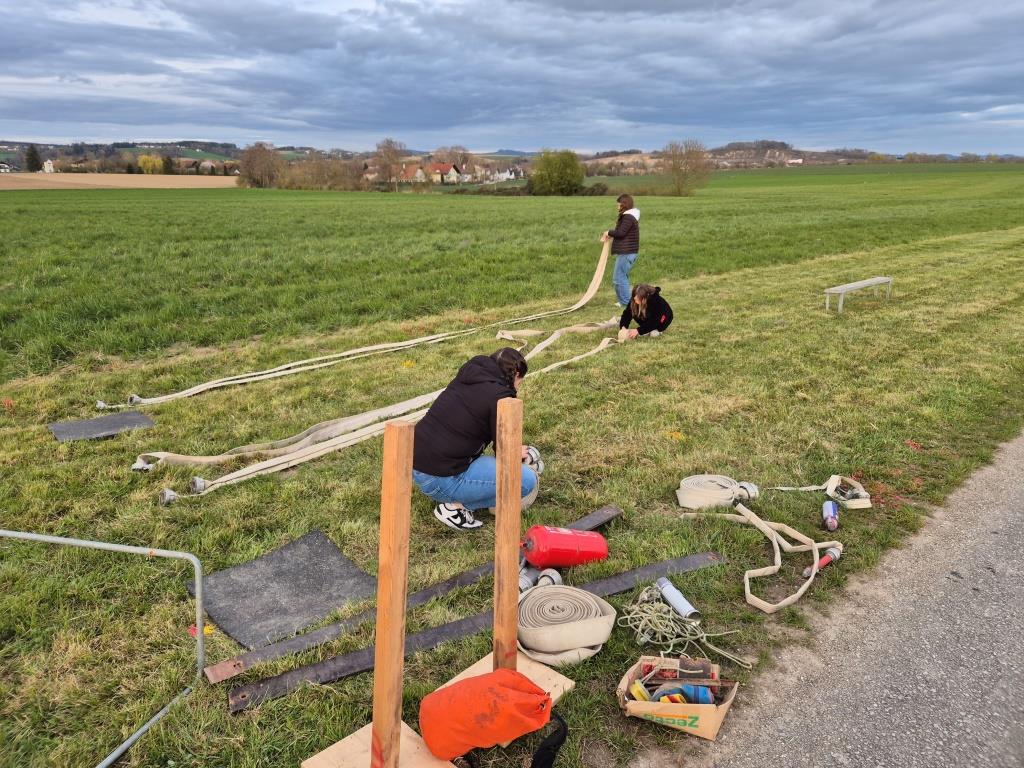Nach dem Wissenstest ist vor dem Bewerbstraining. Nachdem alle mit Erfolg am Wissenstest teilgenommen haben beginnt nun das Bewerbstraining für die kommende Bewerbssaison. Das Team der Jugendbetreuer traf sich am Montag und Dienstag um die neue Bewerbsbahn bei unserem Kameraden Harry Lang gemeinsam aufzubauen.