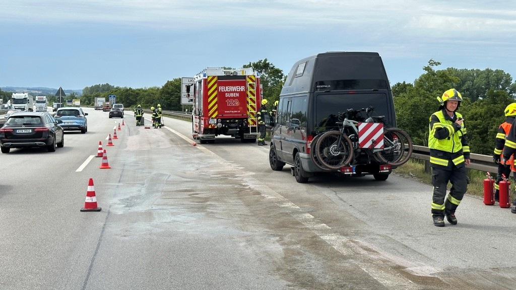 Die FF-Suben wurde gegen 15:17 Uhr gemeinsam mit der FF-St. Marienkirchen zu einem Verkehrsunfall/Aufräumarbeiten auf der A3 (Deutsche Autobahn) gerufen. Einsatzgrund war ein Metallteil, welches auf der Fahrbahn lag und beim überfahren nach oben geschleudert wurde. Dabei streifte es den Tank bzw. dessen Zuleitung so stark, dass Betriebsmittel ausfloss.