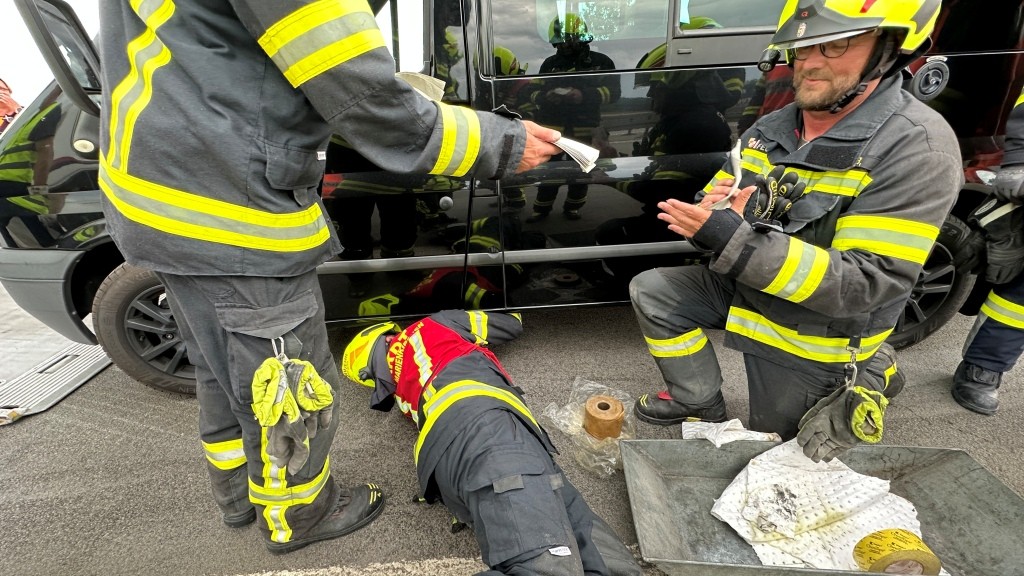 Beim Eintreffen der Einsatzkräfte konnte die Leckage schnell ausgemacht werden und ein weiteres Auslaufen durch Auffangen verhindert werden. Das Betriebsmittel, welches bereits auf die Fahrbahn gelangte wurde mit einer entsprechenden Menge Ölbindemittel gebunden und von der Fahrbahn entfernt.
