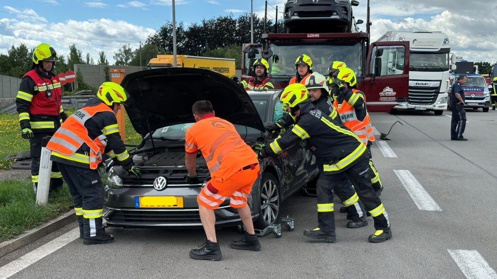 Durch einen E-Call wurde die FF-Suben gemeinsam mit der FF-St. Marienkirchen gegen 11:02 Uhr zu einem Verkehrsunfall mit eingeklemmter Person im Bereich der A8 Grenzübergang Suben - Zollamtsgelände gerufen. Bereits auf der Anfahrt wurden die Einsatzkräfte durch Florian LFK darüber informiert, dass zumindest ein Unfallfahrzeug auf der Seite liegt. Bereits bei der Anfahrt von der Auffahrt zur Autobahn bis kurz vor dem Grenzübergang hatte sich ein Stau gebildet. Die Bereits eingetroffene Polizei hatte die A8 in diesem Bereich gesperrt. Die Einsatzkräfte der Feuerwehr bauten sofort eine Rückwärtssicherung auf um schnellstmöglich mit dem Hydraulischen Rettungsgerät die Befreiung der Verunfallten Person in die Wege zu leiten. Person bereits befreit - Die zuvor eingeklemmte Person konnte durch die Polizei bereits durch die hintere Fahrertür aus dem Fahrzeug befreit werden. Somit konnte der Einsatzschwerpunkt auf das Freimachen der Fahrbahn und beseitigen der Trümmer gelegt werden. Bereits 30 Minuten nach der Alarmierung konnte eine Fahrspur für den Verkehr freigegeben werden. Nach 55 Minuten nach der Alarmierung wurde der 2. Fahrstreifen der A8 freigegeben und die Einsatzkräfte rückten in die Feuerwehrhäuser ein. Gegen 12:15 Uhr beendeten beide Feuerwehren den Einsatz.