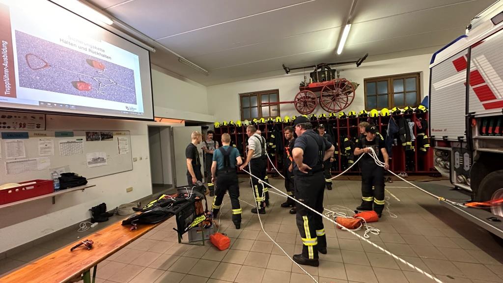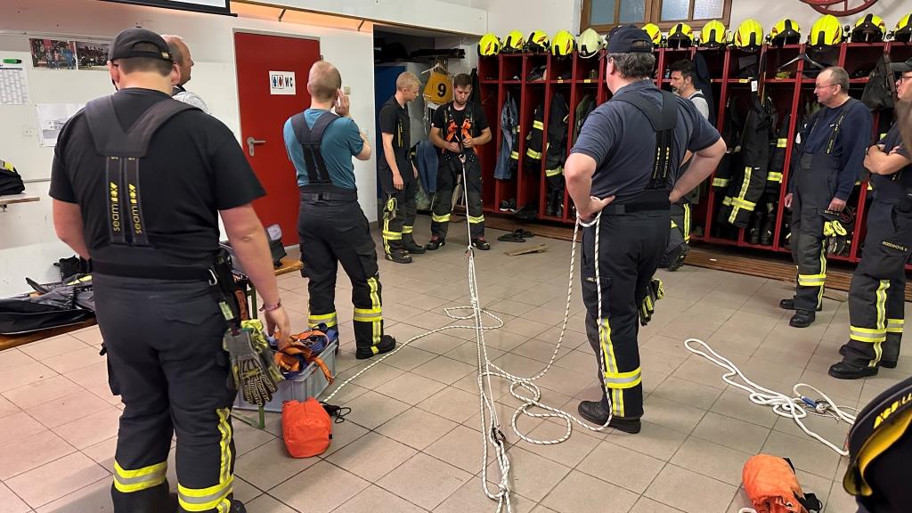 Zur Auffrischung gab es am Anfang auch gleich nochmal Knotenkunde mit den wichtigsten Knoten - diese werden auch schon bei der Feuerwehrjugend geschult - im Feuerwehrdienst.