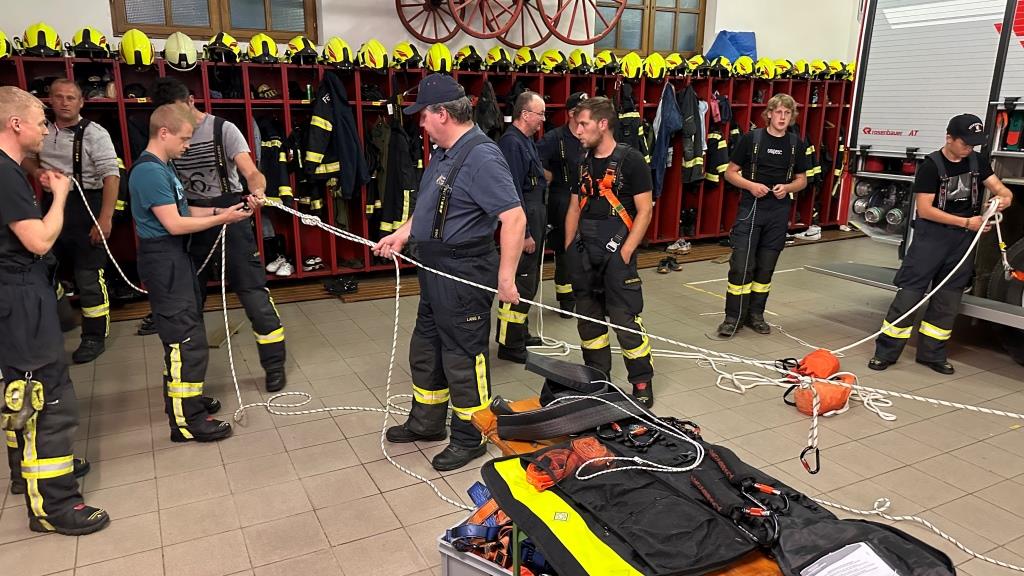 Im Rahmen der Ausbildung am Dienstag wurde der Ausbildungsblock Absturzsicherung begonnen. Dabei wird speziell auf das NEUE Absturzsicherungsset und dessen Verwendung bei Einsätzen und Übungen eingegangen. Dieses Set beinhaltet alles was zur Sicherung der Kameraden aber auch zur Sicherung von verunfallten gebraucht wird.