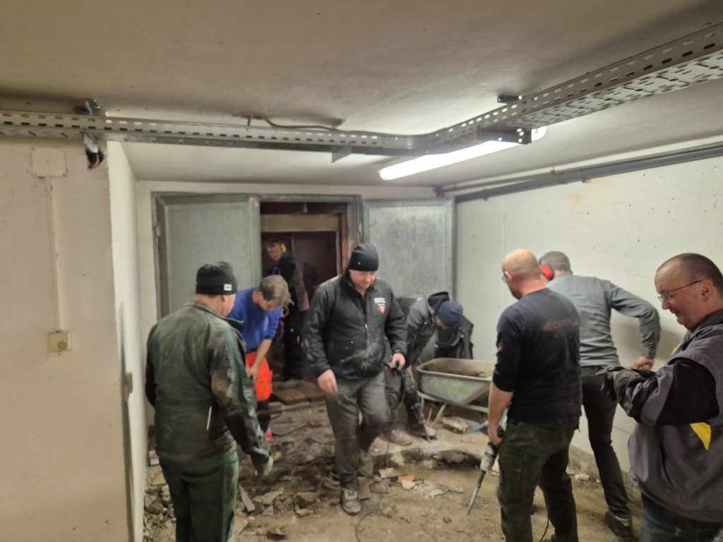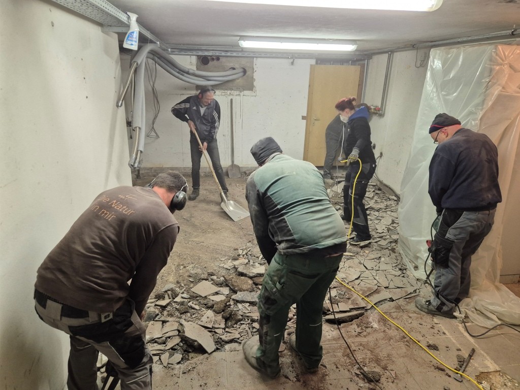 Nach und nach schreitet die Baustelle voran. Der Estrich im Keller wurde bereits in den letzten Wochen durch Eigenleistung entfernt. Die Baufirmen haben die Bentonarbeiten bereits abgeschlossen und die ersten Mauern hochgezogen. Auch das Gehölz für die ersten Teile des Dachstuhls wird durch die Kameraden der Feuerwehr vorbereitet und noch diese Woche montiert. Ziel ist es, die Anbauten und Dächer für den Winter entsprechend dicht zu machen, dass über die Kalte Jahreszeit im Inneren die Arbeiten fortgesetzt werden können.
