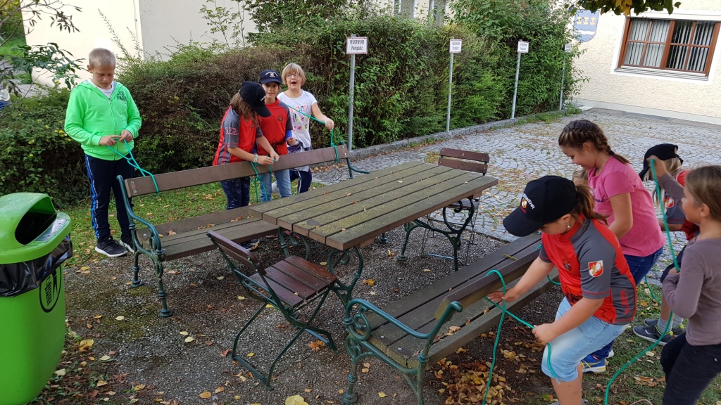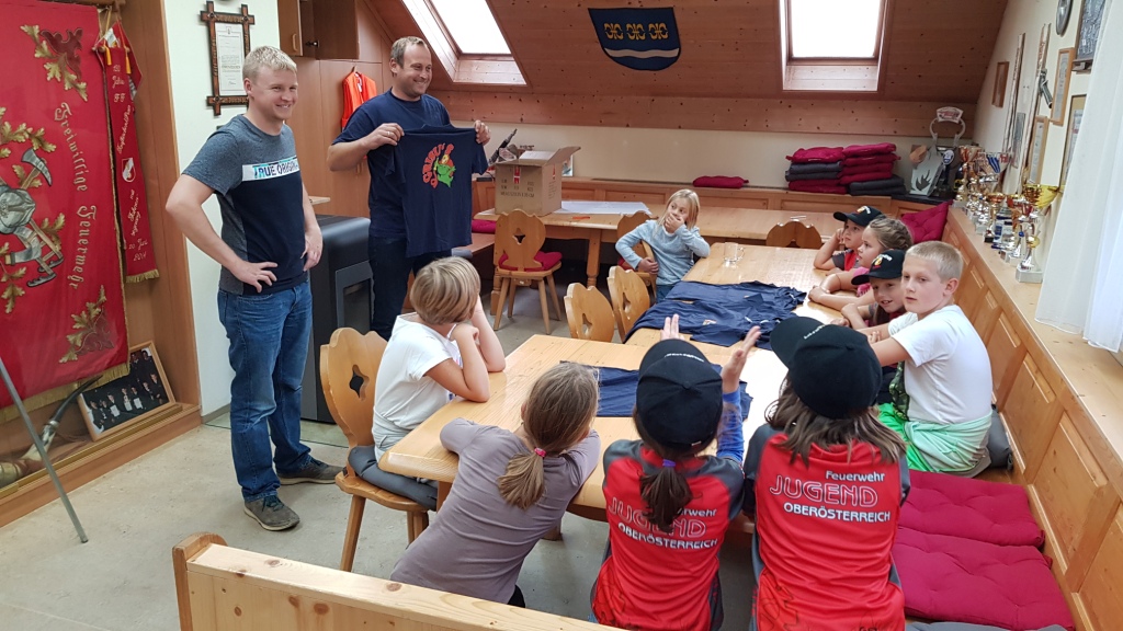 Beim heutigen Treffen der Grisugruppe wurden wieder fleißig die bereits erlernten Knoten geübt und ein dritter neuer Knoten erlernt. Um auch dem Bewegungsdrang der Kinder gerecht zu werden durften sie noch vor dem Feuerwehrhaus eine Runde Fangen spielen. Zum Abschluss gab es noch eine kleine Überraschung für die Kinder. Nachdem die Bereits übergebenen Ausrüstungsgegenstände (Feuerwehrkapperl und das rote Feuerwehrleibchen) als "Dienstbekleidung" gelten und in der Freizeit nicht getragen werden dürfen, bekamen die Grisus ein zusätzliches Leibchen, gesponsert von der Fa. Umweltservice Duscher, welches sie auch in der Freizeit tragen dürfen. Natürlich war die Freude auf allen Seiten groß!