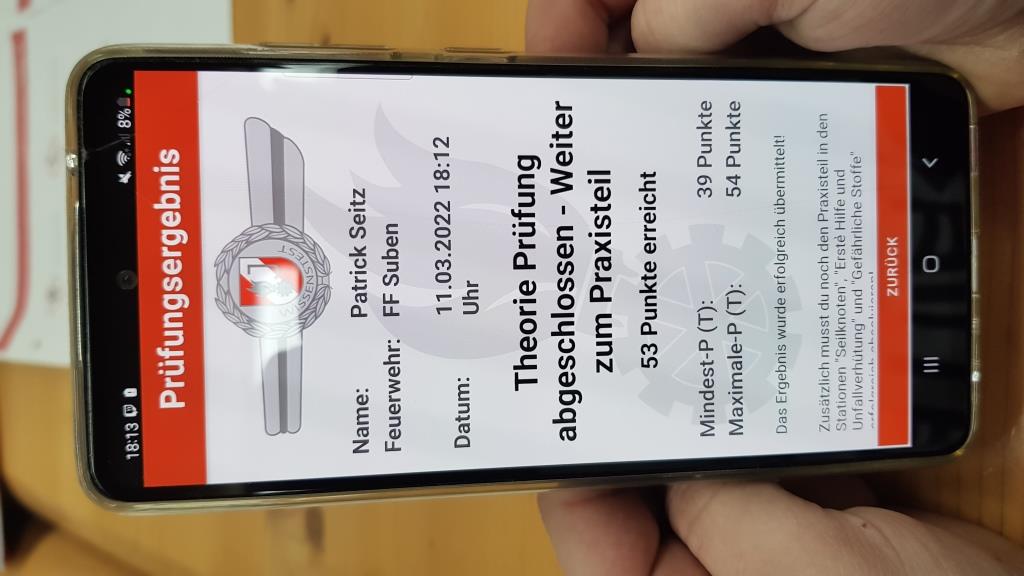 Freitag, den 11. März wurde im Feuerwehrhaus abends die Wissenstestprüfung per Handy mittels Prüfungsapp durchgeführt. Dies macht 95 Prozent des Wissenstest aus. Der praktische Teil findet am 2. April in Schardenberg statt. Die Prüfung bestanden haben