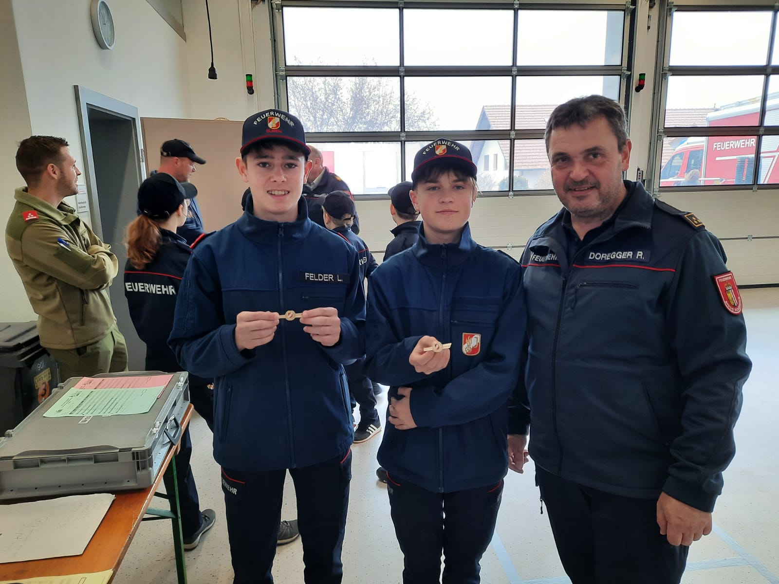 Bereits am Vormittag wurde der Wissenstest in Gold bei der FF-Schardenberg abgehalten. Die JFM FELDER Lukas und MITTENDORFER Michael haben daran teilgenommen und diesen natürlich auch bestanden. Das Wissenstestabzeichen in Gold wurde den beiden im kleinen Rahmen überreicht!